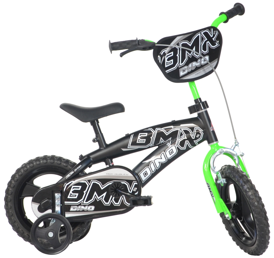 Dětské kolo Dino Bikes v typu BMX je ztvárněno s důrazem na sportovní design, který přitahuje svým propracovaným vzhledem. Výroba těchto kol probíhá v Itálii, a jsou dodávána tak, že jsou již z 95% sestavena, což v praxi znamená, že je nutné pouze dokončit montáž řidítek, sedla a případně blatníků. Prodloužená záruka na 3 roky. Netýká se opotřebitelných součástek (rukojeti, pedály, pláště brzdy, ložiska,...) Specifikace kola zahrnují 12palcové plastové ráfky s EVA pěnovými pláštěmi a stálý pohon bez volnoběhu, což zjednodušuje manipulaci. Bezpečnost je zajištěna pomocí koncovek na řidítkách a kolo je vybaveno přední čelisťovou brzdou. Přídavná balanční kolečka umožňují stabilní jízdu pro začátečníky. Kolo je ideální pro děti s výškou od 87 do 110 cm, vhodné pro věkovou skupinu 3-4 lety. Jeho rám je lehký, ale pevně vyztužený, vyrobený z HiTech oceli s nosností 45 kg. Celková hmotnost kola je 6,9 kg. Všechny součásti splňují EU bezpečnostní normy a kolo je baleno v bílé potištěné krabici.   Důležité specifikace: Model: Dino Bikes BMX Design: Sportovní Montáž: 95% předmontováno Kola: 12 palců, plastová s EVA pěnou Pohon: Stálý převod bez volnoběhu Bezpečnostní prvky: Koncovky řidítek, přední čelisťová brzda, přídavná balanční kolečka Doporučená výška: 87-110 cm Věk: 3-4 roky Rám: HiTech ocel, vyztužený Nosnost: 45 kg Hmotnost: 6,9 kg Certifikace: EU Balení: Bílá potištěná krabice