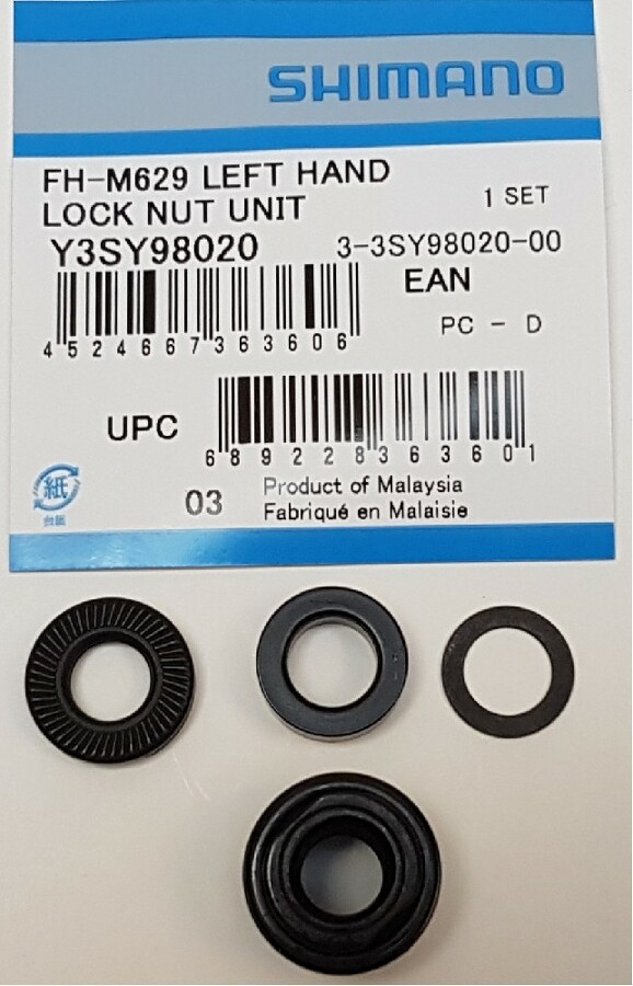 Y3SY98020, kónus zadní Shimano,levý s maticí a podložkou,průměr 17 mm,délka 15,2mm,pro osu 10mm,3 x podložka - délka 6 mm + 4 mm + 0,5 mmpro náboje M675
