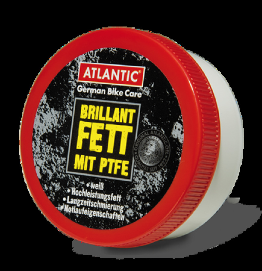 Návod: nejprve byste se měli zbavit mazaná místa starého tuku a jiných nečistot. K tomu můžete velmi dobře použít čisticí a odmašťovací přípravek ATLANTIC. Potom je namažte tukem. Obsažený PTFE (teflon) má výborné mazací vlastnosti a maže ložiska, náboje a všechny pohyblivé části extrémně dlouhodobě. Intervaly mazání by měly být přizpůsobeny způsobu použití.