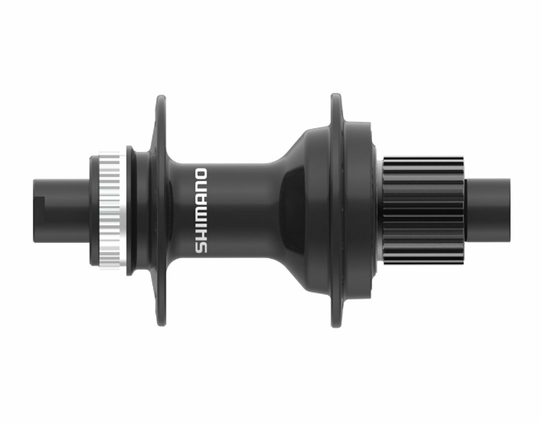Zadní diskový náboj Shimano FH-MT410 s uchycením na pevnou osu 12x142 mm. Náboj má 32 děr pro klasické zahnuté špice, Center Lock příruby pro kotouče a ořech MicroSpline pro 12 rychlostní kazety Shimano.