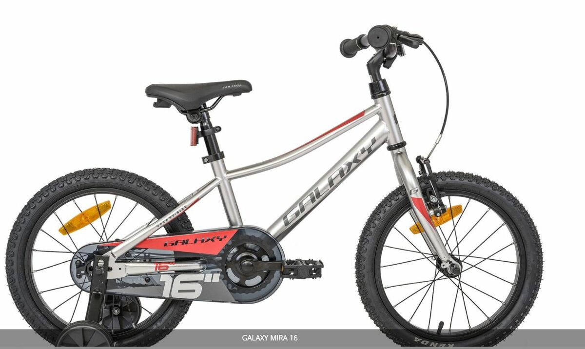 Galaxy Mira s 16" koly je připraven naučit děti správným jízdním návykům a následně odložit balanční kolečka. Ke všemu přidává parádní design a veselé barevné varianty. Jednoduše radost na Galaxy Mira zažít první cyklistická dobrodružství.