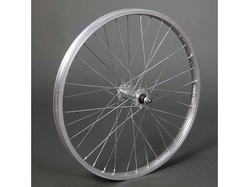 Přední zapletené kolo REMERX RMX 21 Ráfek – Remerx RMX 21 stříbrný, GBS (pro V-brake), 406 (20") paprsky – stříbrné pozink niple – stříbrné pozink náboj - Fe, pevná osa, 36 děr