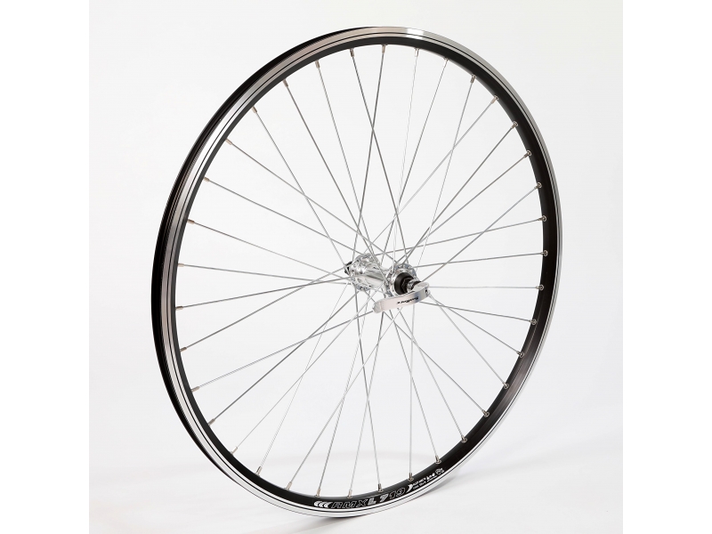 Přední zapletené kolo REMERX DRAGON LINE Ráfek – Remerx Dragon Line černý, GBS (pro V-brake), 559 (26") paprsky – stříbrné pozink niple – stříbrné pozink náboj – Sunrace M53 stříbrný, rychloupínák Váha: 1021g Váhový limit: 120kg