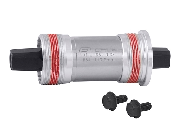 zapouzdřená osa se šroubystříbrné železné tělo, délka domečku: 68 mmhliníkové stříbrné BSA misky s gumovým těsnícím kroužkemkompatibilní na stahovák SHIMANO 89432, 89418celková délka osy: 113 mmhmotnost včetně šroubů: 294 gbaleno v papírové krabičce FORCE