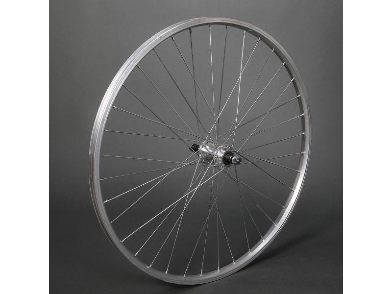 Zadní zapletené kolo REMERX RMX 219 Ráfek – Remerx RMX 219 stříbrný, GBS (pro V-brake), 559 (26") paprsky – stříbrné pozink niple – stříbrné pozink náboj - Joytech, pevná osa s maticemi, pro šroubovací vícekolečko Váha: 1097g