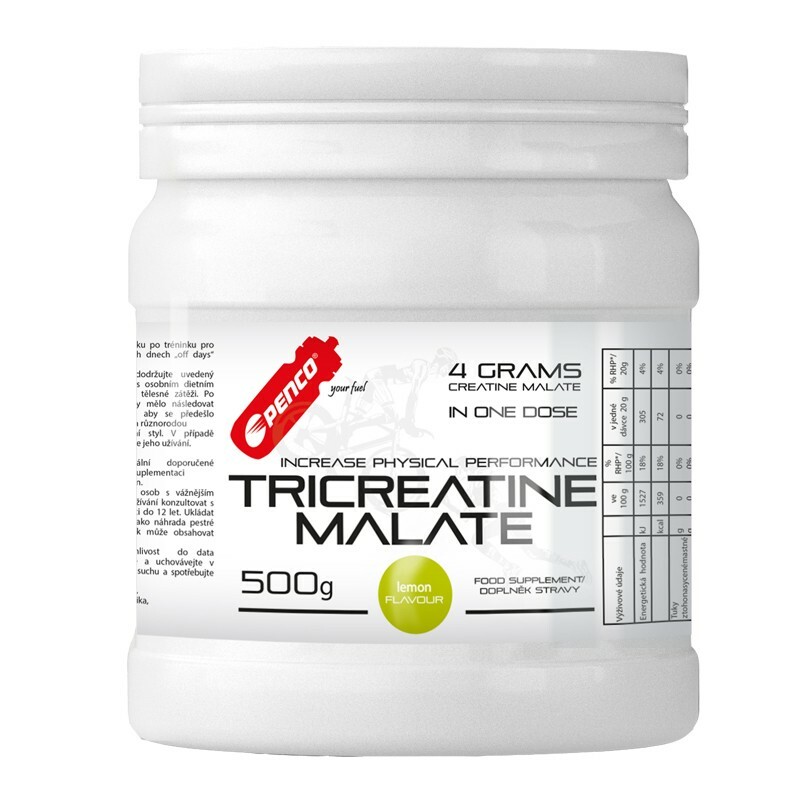 PENCO TCM (TRI-CREATINE MALATE) je práškový koncentrát pro přípravu nápoje, který poskytne v 1 dávce 4 g kreatinu malátu, tj. 2,8 g 100% kreatinu, 15 g glukózy, 10µg chrómu a celé spektrum vitamínů. Akumulaci kreatinu ve svalu napomáhá precizně sestavená receptura nápoje Penco TCM. Vyšší obsah dextrózy stimuluje vylučování anabolického hormonu inzulínu, který transportuje kreatin do svalových buněk. Tvorbu inzulínu podporuje také přítomný chróm, který přispívá k udržení normální hladiny glukózy v krvi.
