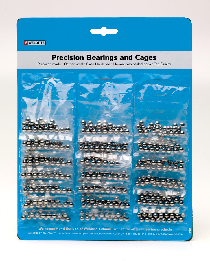 Náhradní ocelové kuličky Weldtite s průměrem 4 mm jsou určené pro hlavová složení. Ta jsou vlivem vystavení vodě od předního kola dost náchylná na vlhkost a rezivění věnečků s kuličkami. Náhradní tříděné kuličky vyrobené v Anglii mají speciální kalenou povrchovou úpravu pro dlouhou životnost.