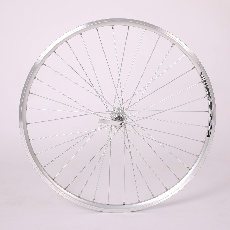 Přední napletené kolo Remerx HIT 26" (559). Náboj Joytech Al s rychloupínákem, kuličková ložiska. Celostříbrné.