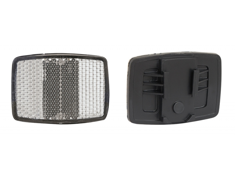 přední bílá hranatá odrazka lomený obdélníkový tvar 55×35 mm na zacvaknutí
