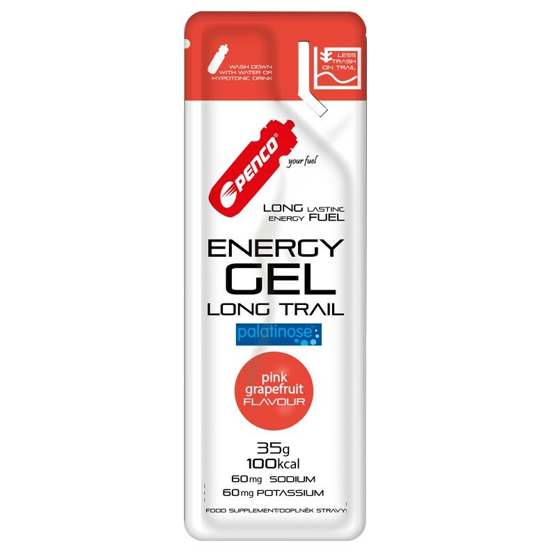 Penco® ENERGY GEL LONG TRAIL zvyšuje hladinu sacharidového „paliva“ před a během výkonu. Obsahuje speciální směs komplexních sacharidů (maltodextrinů) a jednoduchých cukrů (glukózy a fruktózy) a nyní nově i Palatinosu pro postupné uvolňování energie během déletrvajících sportovních výkonů.
